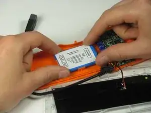 Не пытайтесь полностью извлечь аккумулятор, так как проводка соединяется с материнской платой.
