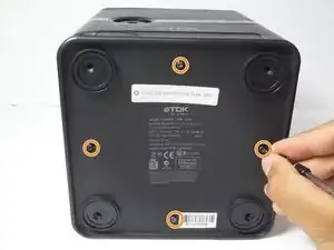 Удалите четыре винта Phillips #0 размером 9 мм, расположенные под ножками устройства.