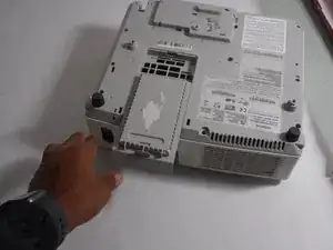 Найдите слот для воздушного фильтра в нижней части проектора, перевернув проектор и посмотрев под линзой.