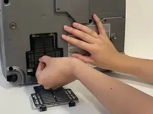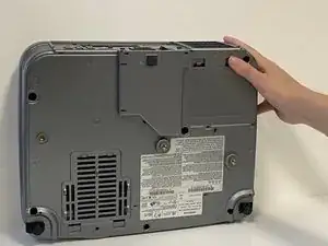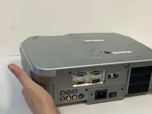 Положите проектор на бок так, чтобы нижняя часть устройства была хорошо видна.