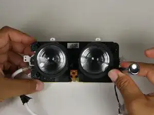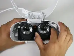 Осторожно извлеките сборку линзы и материнской платы из белого корпуса.