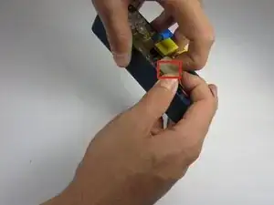Найдите выключатель питания и осмотрите область под желтым пластиком.