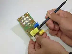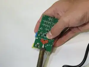 Свинец вокруг всех трех выводных соединителей нужно расплавить по отдельности. Толкните выводы с помощью паяльника по мере плавления свинца.