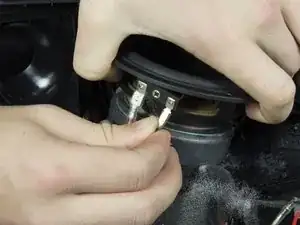 Осторожно, но твёрдо отключите два провода от каждого динамика.