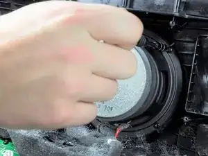 Снимите белый звукопоглощающий материал из колонки. Обратите внимание на расположение материала и отложите его в сторону.
