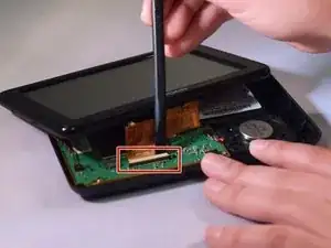 Используйте пластиковый инструмент для открытия, чтобы аккуратно поддеть шлейф от белой пластиковой планки.