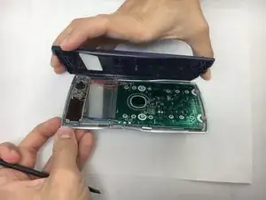 Используйте пластиковую лопатку, чтобы отделить заднюю панель от передней. Вставьте плоский конец лопатки в шов между передней и задней панелью, ближе к одному из краев калькулятора. Затем продвижайтесь лопаткой к центру калькулятора. Две стороны отделятся друг от друга по мере выполнения этой操作ции.