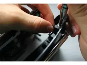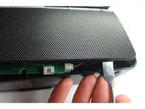 Задняя панель должна быть снята для ремонта или замены внутренних компонентов. Использование металлического инструмента помогает при снятии, так как динамик металлический, и пластиковый инструмент вероятно сломается из-за необходимой силы для удаления панели.