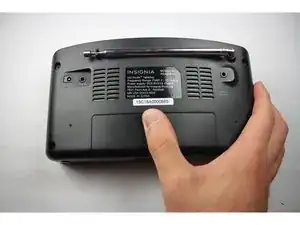 Снимите панель на задней стороне радио, нажав стрелку вниз.
