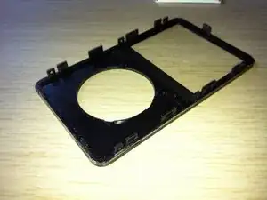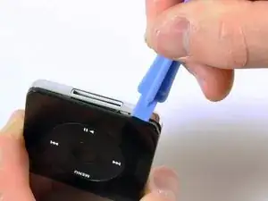 По каждой стороне iPod расположены четыре удерживающие защёлки. Инструмент для открывания iPod будет использоваться для отделения пластиковой передней части от металлической задней.