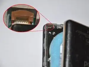 С помощью инструмента для открывания iPod аккуратно поднимите коричневую защёлку разъёма ленточного кабеля разъёма наушников. Защёлка повернётся вверх на 90 градусов, освобождая ленточный кабель.