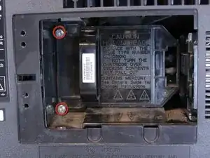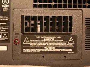 Удалите один винт Филлипс #1 длиной 18 мм на крышке доступа к лампе.