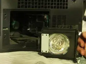 Используя ручку, вытяните корпус лампы прямо назад из телевизора.