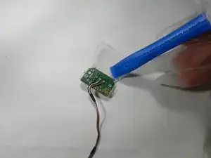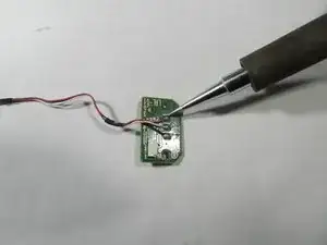 Используйте паяльник, чтобы снять три провода (чёрный, белый, красный) с неисправной платы трекера.