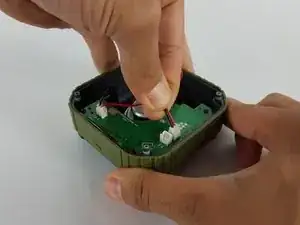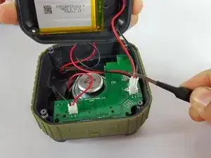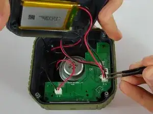 Отсоедините штекер питания аккумулятора от платы, удерживая конец провода и осторожно вытянув его из разъёма пинцетом.
