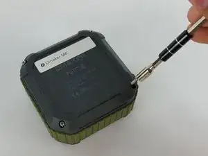 Отверткой T6 Torx отвинтите четыре винта длиной 9 мм на задней панели устройства.