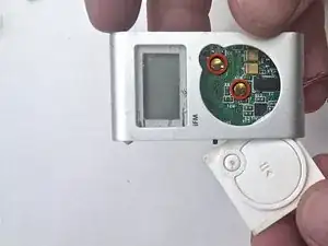 Аккуратно извлеките печатную плату и прикреплённый к ней компонент ЖК-экрана, потянув их к открытой левой стороне устройства.