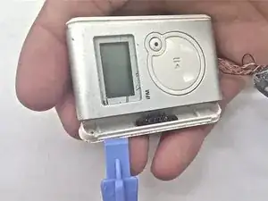 Сначала вставьте кончик пластикового инструмента iFixit в верхний угол устройства.