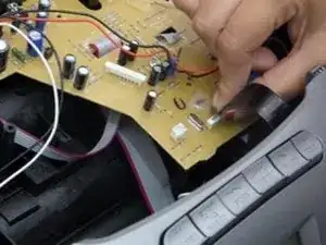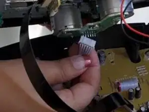 Отсоедините чёрную блестящую ленту, соединяющую плату с передней частью устройства.