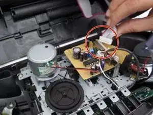 Начните с отключения красно-чёрного кабеля, подключенного к плате.