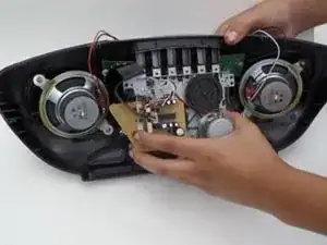 Поверните бумбокс, чтобы увидеть заднюю часть, затем переверните его вверх дном.
