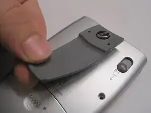 Используйте плоскую отвертку, чтобы вынуть винт 6.5 мм, крепящий зажим ремня к Nomad II.