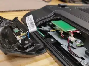 Переверните заднюю крышку влево и отсоедините кабель от материнской платы.