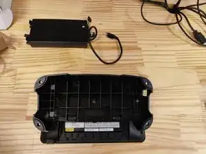 Переверните устройство и извлеките блок питания, скрытый в подставке, открутив рукоятку, затем снимите основание, открутив единственный шестигранный винт.