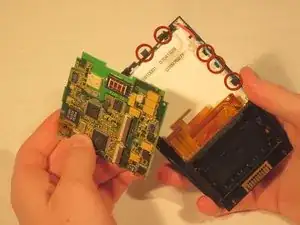 С помощью пинцета отсоедините синие и красные кабели экрана в местах их подключения к плате.