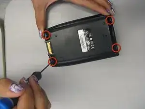 Используя крестовую отвертку, выкрутите четыре винта на задней стороне устройства. После отвинчивания их возможно придётся вынуть вручную.