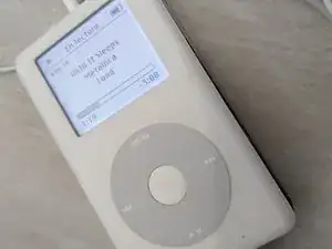 Со временем у старых iPod с жёсткими дисками могут возникать типичные неисправности, такие как разряженная батарея или неработоспособный жёсткий диск. В этом руководстве мы заменим старый жёсткий диск iPod 4G на micro SD карту возможно большей ёмкости. (Экран, показанный в этом руководстве, является признаком отказа жёсткого диска)