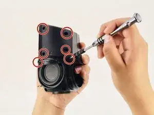 Используя отвертку Torx T6, открутите шесть чёрных винтов Torx 1.7 мм на боковой части устройства.