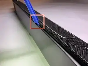 Чтобы снять крышку за кнопками управления, вставьте инструмент для открытия iFixit между крышкой и корпусом.