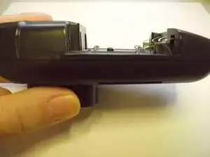 Убедитесь, что пластиковый язычок спереди корпуса рядом с контактом батареи опускается перед металлическим клеммным соединением. Возможно, вам нужно будет отрегулировать переднюю часть корпуса, чтобы плотно закрыть его.