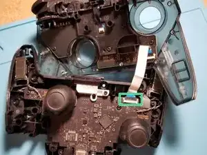 Используйте лопатку или ноготь, чтобы аккуратно разделить две половины контроллера. Осторожно с лентой, соединяющей две платы!