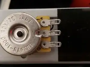 Выдуйте сжатым воздухом потенциометр, чтобы удалить пыль/мусор/волосы/шерсть, которые могли попасть внутрь потенциометра.