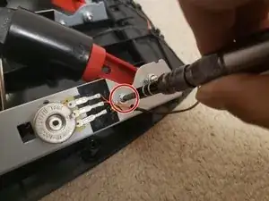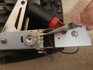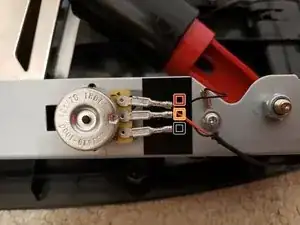 После снятия четырёх винтов вы можете снять педаль с основания, чтобы получить более ясный обзор и доступ к потенциометру и его соединениям.