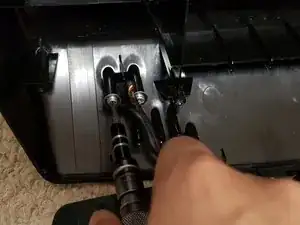 Не оттягивайте верхнюю крышку слишком далеко, так как к ней прикреплён кабель, который необходимо будет открутить на следующем шаге.