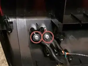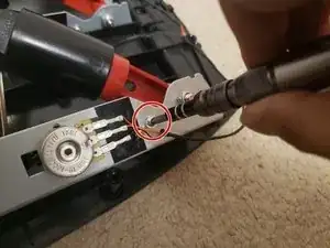 Используя крестообразную отвёртку PH#1, снимите два винта 7,4 мм, удерживающих кабель к верхней крышке.