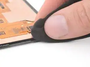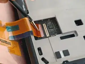 Используйте угловые пинцеты, чтобы схватить вкладку на шее экранного кабеля.