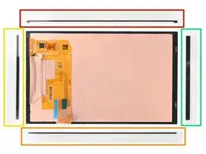 Обратите внимание, что длинные полоски клея занимают всю длину экрана, а короткие полоски помещаются между краями длинных полос.