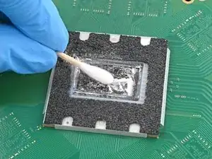 Так же, как с радиатором, очистите и удалите весь старый жидкий металл и его остатки с APU.