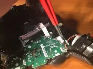 Поверните нижнюю оболочку. В этом изображении сборка батареи удалена для лучшего обзора. Отсоедините шлейф от материнской платы.
