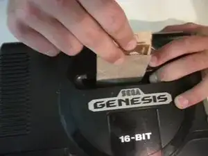Проводите кредитной картой с наждачной бумагой вверх и вниз по вертикали внутри порта картриджа.