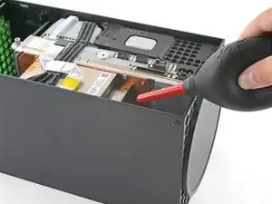 Используйте биту T8 Torx, чтобы открутить три винта, крепящих вентилятор к центральному шасси: