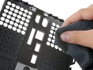 Используйте чистую тряпку или микрофибровую ткань, чтобы протереть обе стороны задней панели.