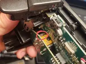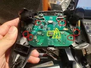 Открутите эти 2 винта (красный круг), чтобы отсоединить кнопку триггера. (Сзади, разумеется) (P.S. я был ленив и не фотографировал разобранную кнопку и плату 😶)