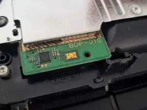 Эта пластина передаёт ёмкость на печатную плату PS4. Вы увидите, что она заканчивается маленьким загнутым элементом.