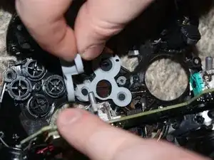После отсоединения верхней платы деталь 3,5-мм разъёма для наушников выпадет. Отложите её в сторону для последующей сборки контроллера.