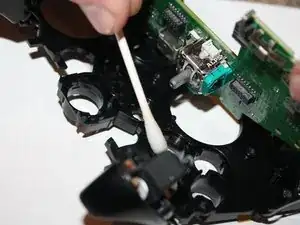 Снимите резиновую накладку кнопок, удерживающую кнопки в контроллере.
